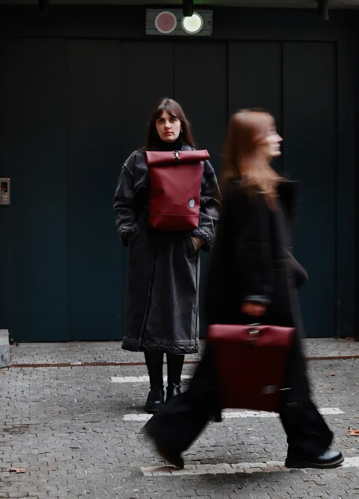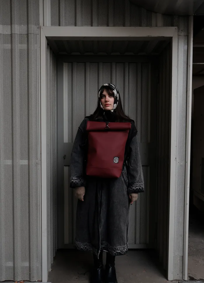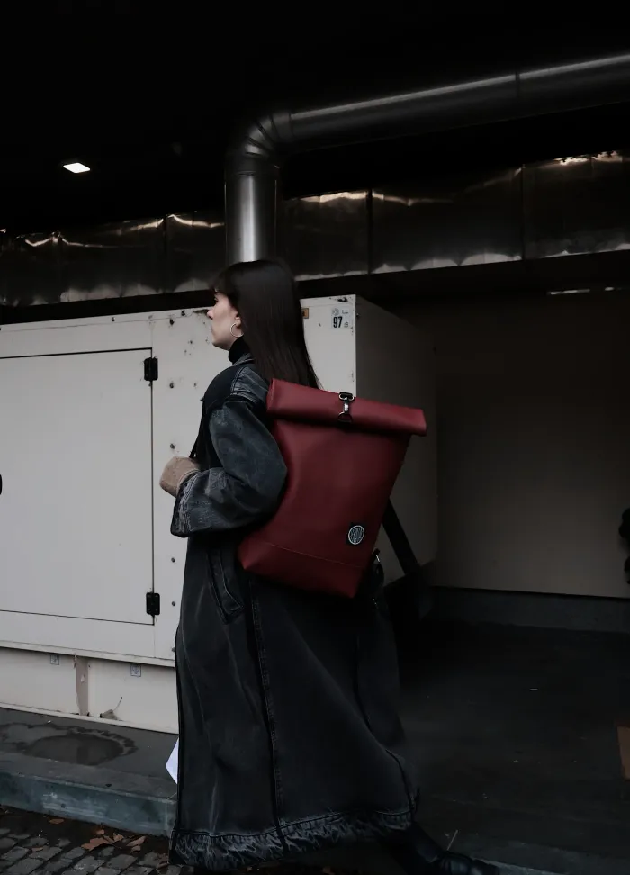 BURGUNDY– Roll-Top Backpack in Eco Leather