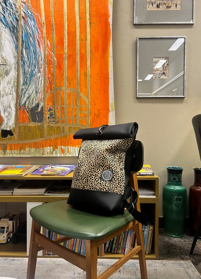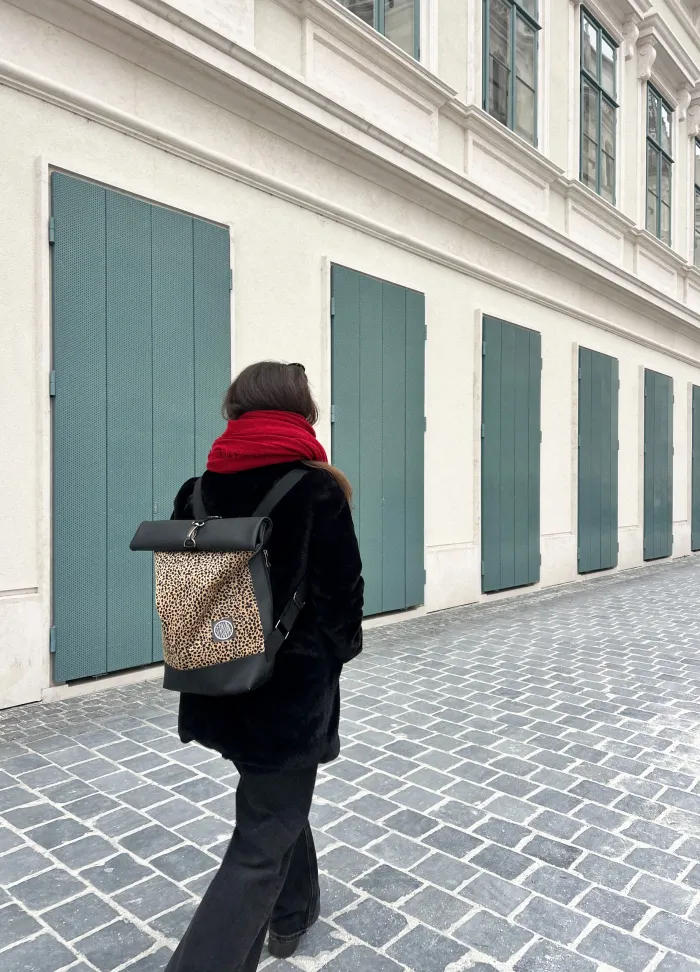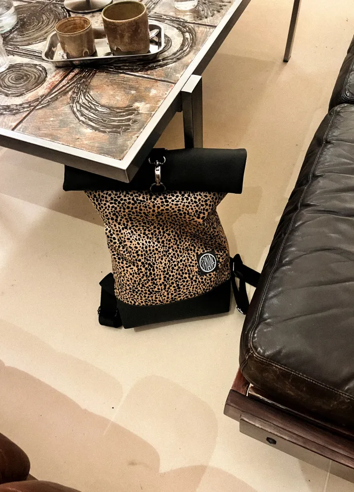 WILD β Roll-Top Backpack in Eco Leather and faux fur